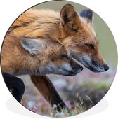Cercle mural - Cercle mural - Renard roux avec jeune - Aluminium - Dibond - ⌀ 90 cm - Intérieur et Extérieur