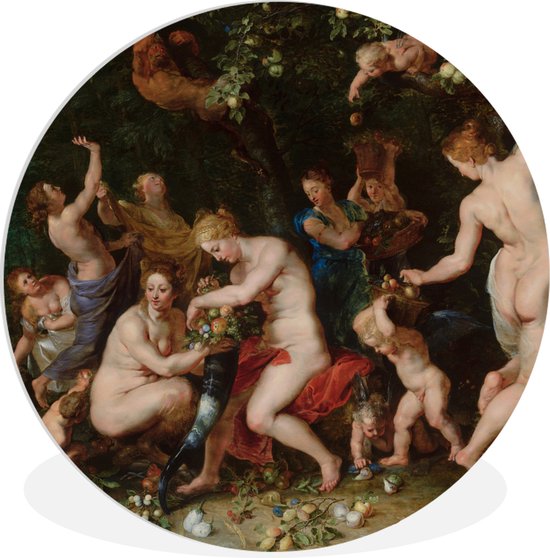 Nymphes remplissent la corne d'abondance - Peinture de Peter Paul Rubens Assiette en plastique de cercle mural
