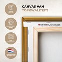 La photo est imprimée sur une toile robuste de 260 grammes de 0,41 mm d'épaisseur. Le lin est tendu étroitement sur un cadre en bois de deux centimètres d'épaisseur. Ce cadre en bois est en bois de pin certifié PEFC de qualité. Un système de suspension peut être commandé en option avec le produit pour fixer facilement l'impression au mur.
