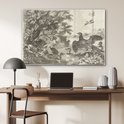 Reproduction d'art de la sauvagine et d'un chien, Melchior d'Hondecoeter, 1646-1695