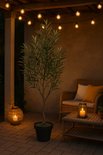 Design réaliste et élégantCet olivier artificiel est presque impossible à distinguer d’un vrai. Les feuilles étroites, vert foncé et les fruits d'olivier subtilement présents lui confèrent une apparence réaliste. Le tronc présente une légère courbure, ce qui donne à l'arbre un aspect authentique et rustique.