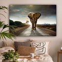 Egayez votre intérieur avec cette toile. Un éléphant est représenté sur une route. Créez une ambiance cosy dans votre intérieur avec cette image sur votre toile !