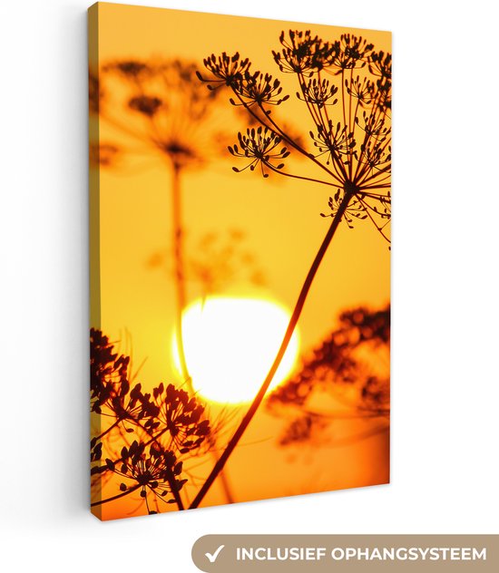 OneMillionCanvasses - Toile - Peinture - Soleil - Plantes - Oranje - Horizon - Photo sur toile - Toile - 40x60 cm - Décoration murale