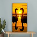 Enrichissez votre intérieur avec cette toile de OneMillionCanvasses! La peinture sur toile montre deux silhouettes de cygnes lors d'un coucher de soleil.