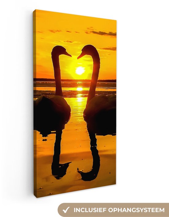OneMillionCanvasses - Toile - Tableau - Cygne - Coucher de soleil - Water - Vogel - Toile - 40x80 cm - Décoration murale - Intérieur
