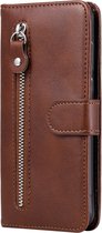 OnePlus 9 Pro Book Case Cover with Zipper - Similicuir - Porte-cartes - Portefeuille - OnePlus 9 Pro - Marron