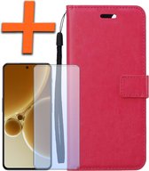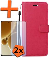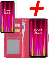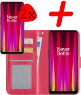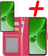 OnePlus Nord 3 Case Bookcase Cover Flip Case Book Cover 2x avec protecteur d'écran - OnePlus Nord 3 Cover Book Case Case - Rose foncé