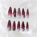 Ongles pressés Handgemaakt - Ongles longs rouges en amande - Silk venimeuse - Taille XS