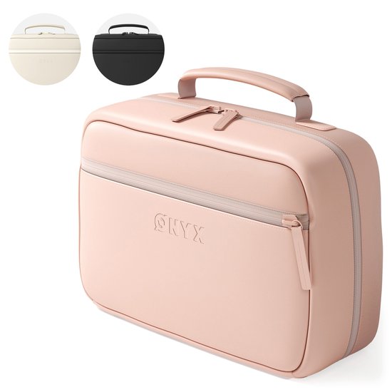 La trousse ONYX dépasse les standards habituels avec sa pochette intérieure amovible. Utilisez-la pour garder votre maquillage et petits objets séparés et en sécurité. De plus, le miroir de maquillage intégré offre un espace pratique pour des retouches rapides, où que vous soyez. Un ajout indispensable pour les matins chargés et les moments où vous voulez être au mieux de votre forme.