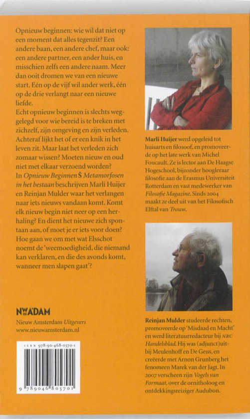 In Filosofie Magazine verscheen in 2007 een artikel van de filosofe Marli Huijer dat onverwacht veel reacties opriep: 'Opnieuw beginnen - De belofte van het onverwachte'. 'Echt opnieuw beginnen,' was Huijers stelling, 'is slechts weggelegd voor de enkeling die bereid is radicaal te breken met zichzelf, zijn omgeving en zijn verleden. Maar zelfs wie dat kan, zal op enig moment merken dat het oude leven zich weer aandient. Het idee dat het verleden zomaar kan worden gewist is een illusie.'
