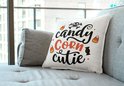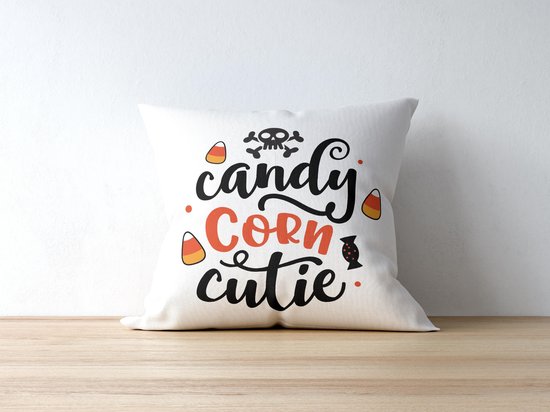 Oreiller d'Halloween avec texte : Candy Corn cutie | Décoration Halloween | Cadeaux drôles | Cadeau | Coussin