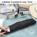 Cet oreiller de voyage innovant allie confort et fonctionnalité, idéal pour tout voyage. Fabriqué à partir de polyester et de matériaux de haute qualité, il offre un soutien doux et confortable à votre cou et à vos lombaires lors de longs voyages en voiture ou en avion. Le kussen mesure environ 75 x 15 x 15 cm sans rembourrage, offrant ainsi suffisamment d'espace pour une organisation intelligente des bagages. La conception à fermeture automatique maintient vos affaires en sécurité et organisées. Remplissez simplement le kussen de vêtements ou d'autres objets doux pour créer un support parfaitement formé qui répond à vos besoins. En plus de servir d'oreiller cervical confortable, il sert également d'organisateur pratique et d'étui de transport. Avec suffisamment d'espace pour ranger trois jours d'essentiels, cet kussen est un ajout polyvalent à votre trousse de voyage. Lorsqu'il n'est pas utilisé, il se plie de manière compacte pour un rangement facile. Pour plus de commodité, l' kussen est équipé d'un long cordon accessoire afin que vous puissiez l'attacher sans effort à vos bagages pour un transport facile.
