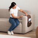 Pratique comme un organisateur de banqueNotre organisateur pratique ne comporte pas moins de 5 compartiments et se place très facilement sur l'accoudoir du canapé, grâce au montage simple, cet organisateur de canapé reste parfaitement en place en repliant le rabat entre l'accoudoir et le siège. Notre organisateur de canapé de luxe dispose de 4 petits compartiments où vous pouvez mettre différents produits, tels que votre téléphone, vos lunettes ou votre télécommande. De plus, il y a un grand compartiment pour une tablette ou un livre, vous avez donc tout organisé en un seul endroit.