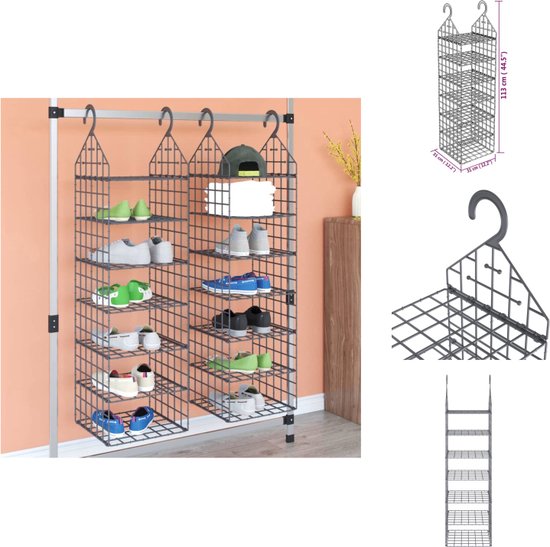 vidaXL Organisateur de placard suspendu - Organisateurs de placard suspendus - Organisateur de placard - Rangement de placard - Organisateurs de placard suspendus 2 pièces avec 7 étagères