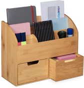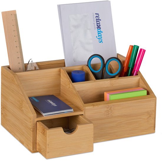 organiseur de bureau - avec tiroir - 6 compartiments - bambou
