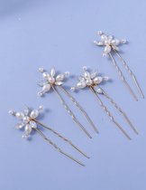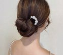 Ornement de cheveux sur une grosse épingle de couleur dorée ornée de perles de couleur ivoire de différentes tailles, notamment pour un chignon ou un twist (mariage, communion, cosplay, sortie, Kpop, kawaii).