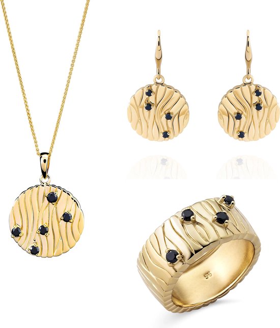 Orphelia SET-7504 / G / 54 - Parure de bijoux: Pendentif avec chaîne + boucles d'oreilles + bague - Argent 925 - Plaqué or - Zircone noire - 3,5 / 42 + 3cm