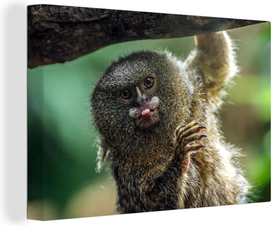 Ouistiti pygmée tirant la langue sur toile 2cm 140x90 cm - Tirage photo sur toile (Décoration murale salon / chambre) / Animaux sauvages Peintures sur toile