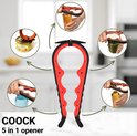 Ouvre-bouteille polyvalent - Ouvre-bouteille multifonctionnel - Ouvre-pot 7 en 1 - Cuisine Aid - Ouvre-bouteille - Ouvre-bière - Ouvre-couvercle XL pour bocaux - Accessoires pour les Personnes âgées - Zwart/rouge