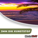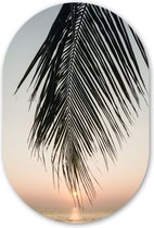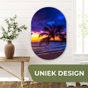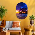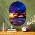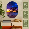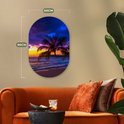 Ovale mural - Décoration murale en plastique - Tableau ovale - Palmier - Violet - Coucher de soleil - Plage - Mer - 60x90 cm - Forme miroir ovale sur plastique