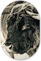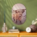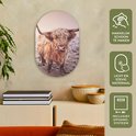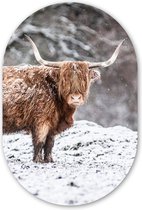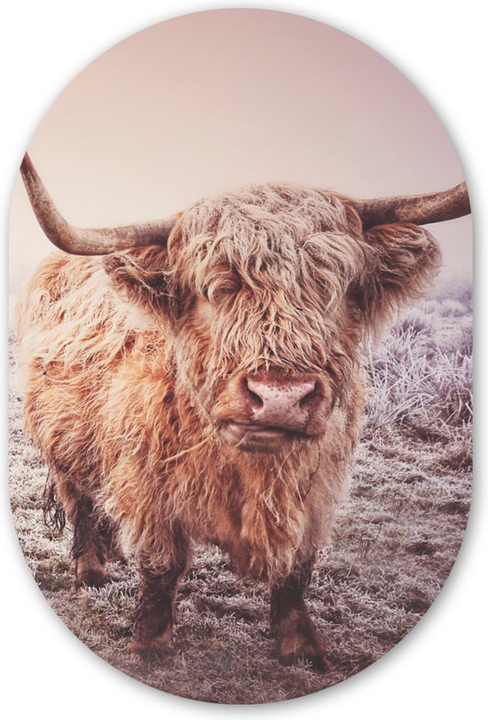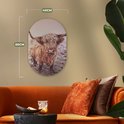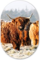 Ovale Mural - Décoration murale Plastique - Peinture Ovale - Highlanders écossais - Neige - Soleil - 40x60 cm - Forme miroir ovale sur plastique