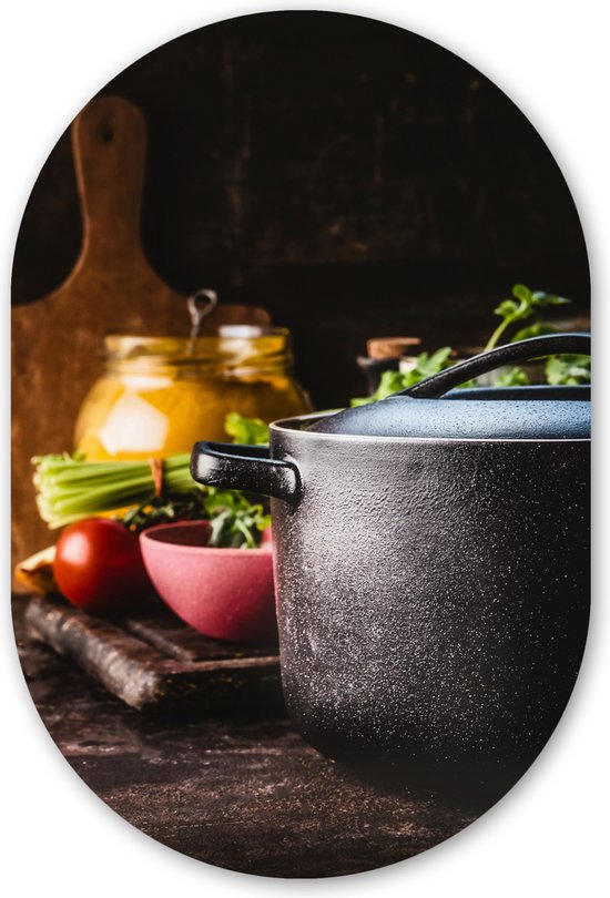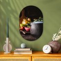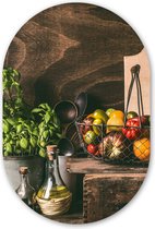 Ovale mural - Ovale mural - Décoration murale murale en plastique - Peinture ovale - Rustique - Nature morte - Pan - Légumes - 40x60 cm - Forme miroir ovale sur plastique