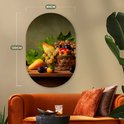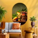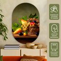 Ovale mural - Ovale mural - Décoration murale murale en plastique - Tableau ovale - Rustique - Corbeille - Fruits - Nature morte - 80x120 cm - Forme miroir ovale sur plastique