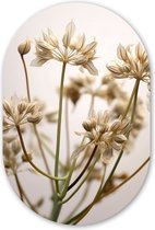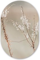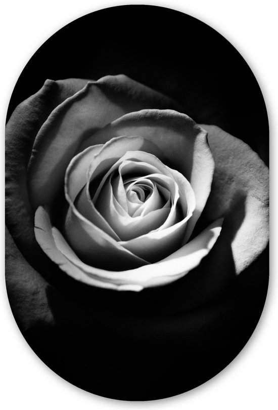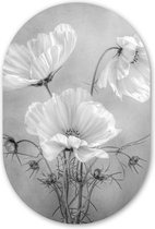 Ovale Mural - Ovale Mural - Décoration murale Murale Plastique - Peinture Ovale - Fleurs - Zwart - Rose - Wit - Botanique - 40x60 cm - Forme miroir ovale sur plastique
