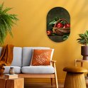 Ovale Mural - Ovale Mural - Décoration murale Plastique - Peinture Ovale - Rustique - Pomme - Fruit - Rouge - Panier - Nature Morte - 40x60 cm - Forme Miroir Ovale sur Plastique