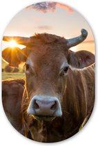 Ovale Mural - Ovale Mural - Décoration murale Plastique - Peinture Ovale - Vaches - Campagne - Pâturage - Nature - Animaux - 60x90 cm - Forme miroir ovale sur plastique