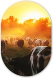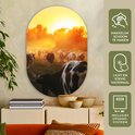 Ovale Mural - Ovale Mural - Décoration murale Plastique - Peinture Ovale - Vaches - Coucher de Soleil - Pâturage - Animaux - 80x120 cm - Forme Miroir Ovale sur Plastique