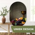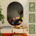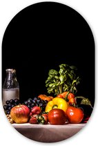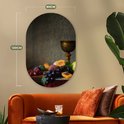 Ovale mural - Ovale mural - Décoration murale plastique - Tableau ovale - Rustique - Table - Fruits - Nature morte - Tasse - 80x120 cm - Forme miroir ovale sur plastique