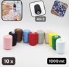 Écrit pour: FIL POLYESTER 40/2 LOCK FIL/OVERLOCK, 10 bobines de 1000 MÈTRES, 10 Couleurs Différentes, Total 10000 MÈTRES