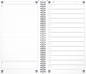 - Une page sur le côté droit pour les tâches, avec 14 cases pour les notes complètes mais courtes.