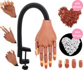 Pack combiné de technicienne d'ongles - Main d'entraînement professionnelle + 7 Pinceaux roses + 100 ongles d'entraînement - Votre ensemble d'entraînement tout-en-un !