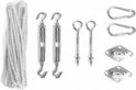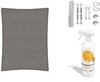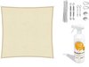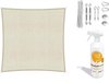 Sunfighters Toile d'ombrage Créez de l'ombre supplémentaire dans votre jardin ou sur votre toit-terrasse avec la toile d'ombrage perméable à l'eau. Bien que le nom suggère le contraire, cela ne signifie pas que vous n'êtes pas protégé par une tempête de pluie. L'écran solaire vous protège du soleil et de la pluie. Le profil perméable à l'eau garantit qu'aucune flaque d'eau ne reste sur le chiffon, de sorte que le tissu ne sera pas endommagé ou sale. Vous pouvez utiliser le chiffon pour couvrir les terrasses, au-dessus de la piscine, du refuge pour animaux ou au camping. Un chiffon Sunfighters est fait de tissu en plastique tressé HDPE de 320 grammes par m2 et durable à l'usage. Matériel de fixation: acier inoxydable (AISI304) contenu: 2x: tendeur avec 2 crochets (M8 x 190 mm) 2x: boulon à œil (Ø 8 x 130 mm) 2x: oeil sur plaque (50 x 80 mm) 2x: mousqueton (Ø 8 x 80) mm) 1x: corde en nylon (Ø 6 mm x 5 m) Nettoyant pour tissu extérieur Cleantree: CleanTree Le nettoyant pour tissu extérieur est un nettoyant concentré (prêt à l'emploi) spécialement développé pour éliminer la saleté atmosphérique, la suie et le smog sur: toiles d'ombrage, stores enrouleurs, stores, parasols, auvents, toiles et tentes. Procédez comme suit Vaporisez le nettoyant pour tissu extérieur CleanTree sur la surface à nettoyer. Frottez le nettoyant pour tissu extérieur CleanTree avec une éponge (un mouvement circulaire) sur la surface à nettoyer. Laissez le nettoyant pour tissu extérieur CleanTree tremper pendant quelques minutes. Avant qu'il ne sèche, rincez la surface nettoyée avec de l'eau.