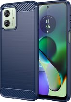 Coque Motorola Moto G54 - MobyDefend TPU Gel Case - Métal Brossé + Aspect Carbone - Blauw - Coque de Protection pour Motorola Moto G54