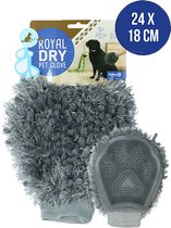 Traitez votre ami à quatre pattes comme des rois avec les produits secs Royal ! Êtes-vous fatigué de promener le chien par temps humide alors que toute la maison est mouillée et sale? Alors Royal Dry a la solution avec diverses serviettes absorbantes, tapis, gants et peignoir. Quel est le secret de Royal Dry ? Les produits Royal Dry contiennent une microfibre spéciale appelée chenille. Le tissu est composé de millions de fils tissés ultra-fins. Grâce à ces fibres, les produits peuvent absorber et retenir l'humidité pas moins de 7 fois leur propre poids.
