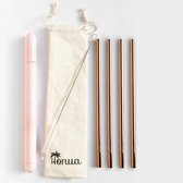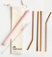 Pailles en métal Honua - Réutilisables - Set de 11 pièces - Pailles durables - Acier inoxydable - Smoothie - Or rose