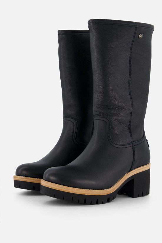 BOTTES EN CUIR AVEC DOUBLURE EN PEAU DE MOUTON La botte Panama Jack présente les caractéristiques suivantes : * Bottines pour femme à talon * Cuir Nappa noir IMPERMÉABLE. * Doublure en peau de mouton. * Semelle anatomique. * Semelle en caoutchouc TPU flexible et durable. * Hauteur de la tige : 35 cm. * Hauteur du talon : 6,5 cm. * Fabriqué en Espagne.