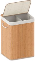 Panier à linge en bambou, collecteur de linge avec 2 compartiments, XL 100, panier à linge pliable en Bamboe , 40L x 60W x 30H
