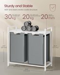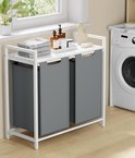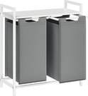 Panier à linge FurnStar - Panier à linge avec 2 compartiments - Sacs à linge coulissants et amovibles - Trieur de linge - Etagère - Structure en métal - 2 x 46L - 73 x 33 x 72 cm - Wit et gris clair