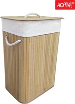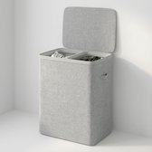 Panier à linge Salla bambou avec sac à linge 60x40x30 cm 72 L marron foncé et gris clair