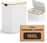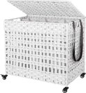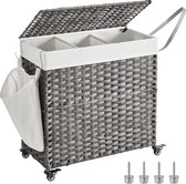 - Panier à linge tissé à la main, panier à linge en poly rotin, avec 3 compartiments, couvercle et poignées, poches amovibles, salon, chambre, buanderie, blanc