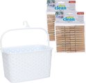 - 1x Épingles à linge panier suspendu sur crochet - 23 x 17 x 13 cm - blanc - plastique tressé