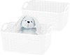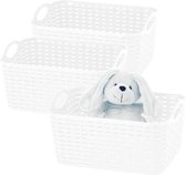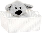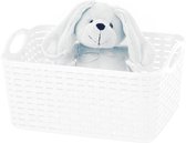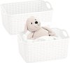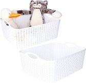 2x panier de rangement/panier de rangement pour la maison en blanc ivoire. Rangez les speelgoed, les objets en vrac ou les vêtements qui traînent facilement et proprement grâce à ce séparateur de placard pratique et à ces paniers de rangement. Paniers de rangement pratiques adaptés aux placards de la chambre, de la chambre d'enfant, du grenier ou du garage. Les paniers ont des poignées pratiques et sont tressés. Taille : environ 33 x 24 x 21 cm. Contenu: environ 12 litres. Matière : plastique. Empilable/emboîteable. Merk: Plasticforte.