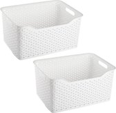 Panier de rangement/panier de placard Plasticforte - 2x - 12 litres - blanc ivoire - plastique - 33 x 24 x 21 cm - emboîtable