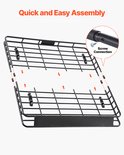 Profitez au maximum de l'espace disponible pour votre famille et vos amis. Avec des dimensions extérieures de 1095 x 1270 x 105 mm (43 x 50 x 4,1 pouces), cette galerie de toit offre un grand espace de rangement pour votre équipement. Le cadre robuste en acier allié a une capacité de charge allant jusqu'à 68 kg et est idéal pour transporter des objets lors d'un déménagement, d'un voyage ou d'un camping.