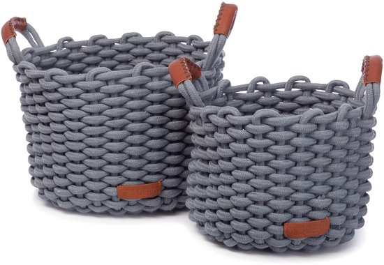 Ensemble de deux paniers pratiques avec poignée. Idéal comme décor pour la pépinière ou comme panier de rangement.23x18cm & 28x20cm Couleur: Brume