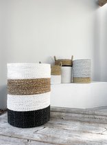 Panier fait main en matières 100% naturelles, tissé en Asie. Ce panier est disponible en différentes tailles. Utilisez-le comme panier à linge, panier de rangement pour speelgoed ou mettez-y votre plant préférée. Cela vous permet de créer un élément atmosphérique absolu dans n'importe quel intérieur.